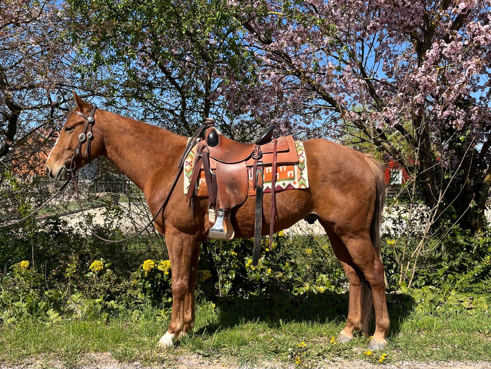 Boggie ist ein freundliches Pferd mit einem angenehm ruhigen Charakter. Er ist gelassen und entspannt im Umgang und fällt dabei nur positiv durch seine Unkompliziertheit auf. Er hat eine gute Grundausbildung erhalten und kann auch von grüneren Reitern geritten werden. Auch im Gelände ist er ein guter Begleiter. Er könnte im gehobenen Freizeitbereich gut aufgehoben sein. Generell hat Boggie auch Interesse an der Cuttingmaschine und an Rindern - beides kennt er schon in den Anfängen.